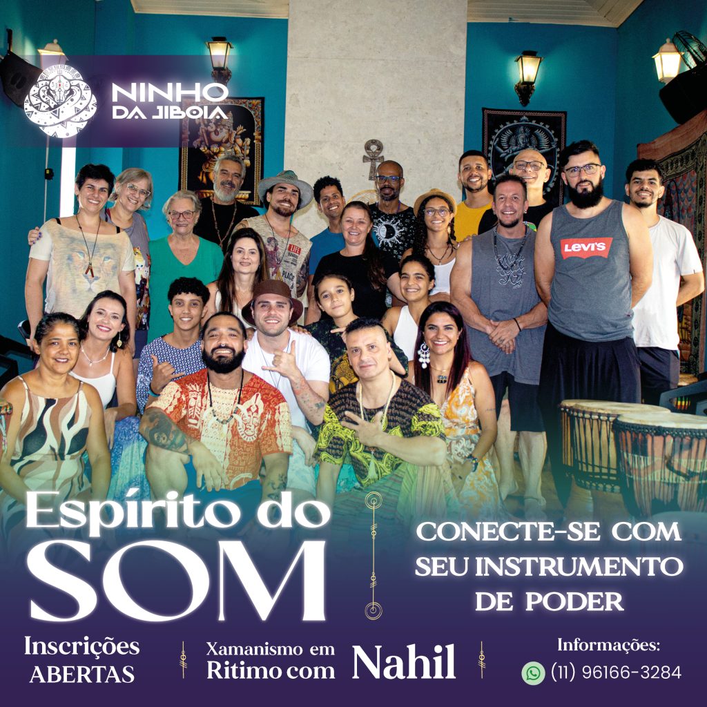 si mesmo. Ao som de instrumentos terapêuticos, como tambores e flautas, conduz a mente a um estado de presença expandida. Nesse campo vibracional, torna-se possível acessar imagens e forças arquetípicas, como o animal